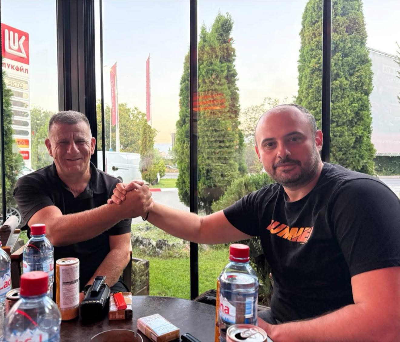 По целовечерна борба со три пожари во Скопје, градоначалникот на Кисела Вода и кандидат за градоначалник на Скопје, Орце Ѓорѓиевски, утрото го започна на кафе со командирот на Противпожарната бригада, Звонко, кого го нарече „вистински чувар на градот и херој“.