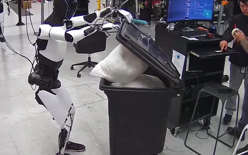 Ново вирално видео од хуманоидниот робот на Тесла е објавено на социјалната мрежа X, на кое се гледа како извршува разни домашни работи.Станува збор за робот наречен Оптимус, кој се обучува во симулација со цел побрз и побезбеден развој на вештини за вештачка интелигенција. Видео објавено на Xu ја истакнува неговата способност да следи инструкции на природен јазик.Во една сцена, Оптимус го крева капакот на корпа за ѓубре, става вреќа со ѓубре во неа, а потоа продолжува да го чисти подот со правосмукалка, покажувајќи напредок во својата способност да извршува задачи од реалниот свет.